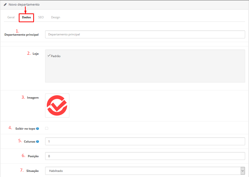 3 – Imagem do departamento: você pode estar adicionando uma imagem ao seu departamento. Basta que ela esteja salva no servidor online da loja.